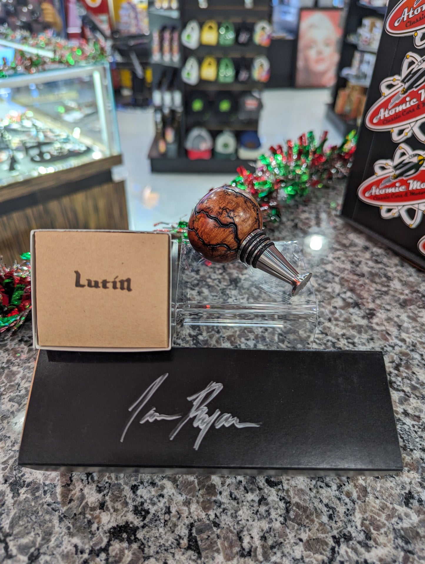 Custom, One-of-A-Kind, Italian Briar Wood Bottle Stopper That is Hand Crafted By Ian Of Lutin BrushWorks. Using The Process of Fractal Burning It Creates A Pattern That is Formed on Each Piece That Will Never Match Another. Comes Gift Boxed.