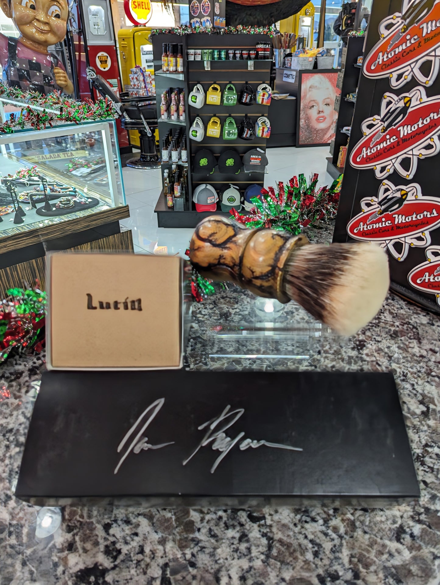 Custom, One-of-A-Kind, Birch Wood Shaving Brush That is Hand Crafted By Ian Of Lutin BrushWorks. Using The Process of Fractal Burning It Creates A Pattern That is Formed on Each Piece That Will Never Match Another. Made of Badger Hair. Comes Gift Boxed.