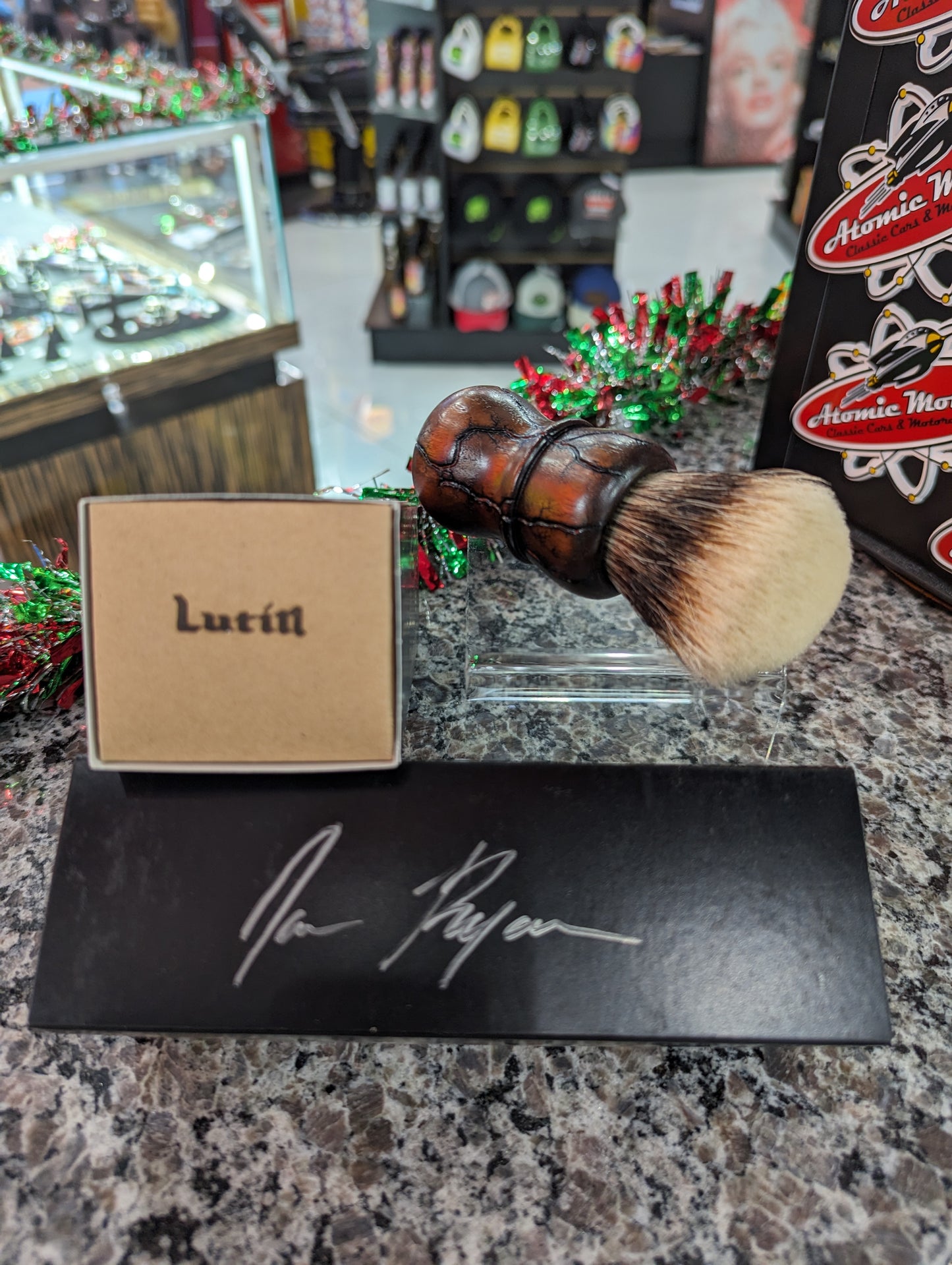 Custom, One-of-A-Kind, Walnut Wood Shaving Brush That is Hand Crafted By Ian Of Lutin BrushWorks. Using The Process of Fractal Burning It Creates A Pattern That is Formed on Each Piece That Will Never Match Another. Made of Badger Hair. Comes Gift Boxed.