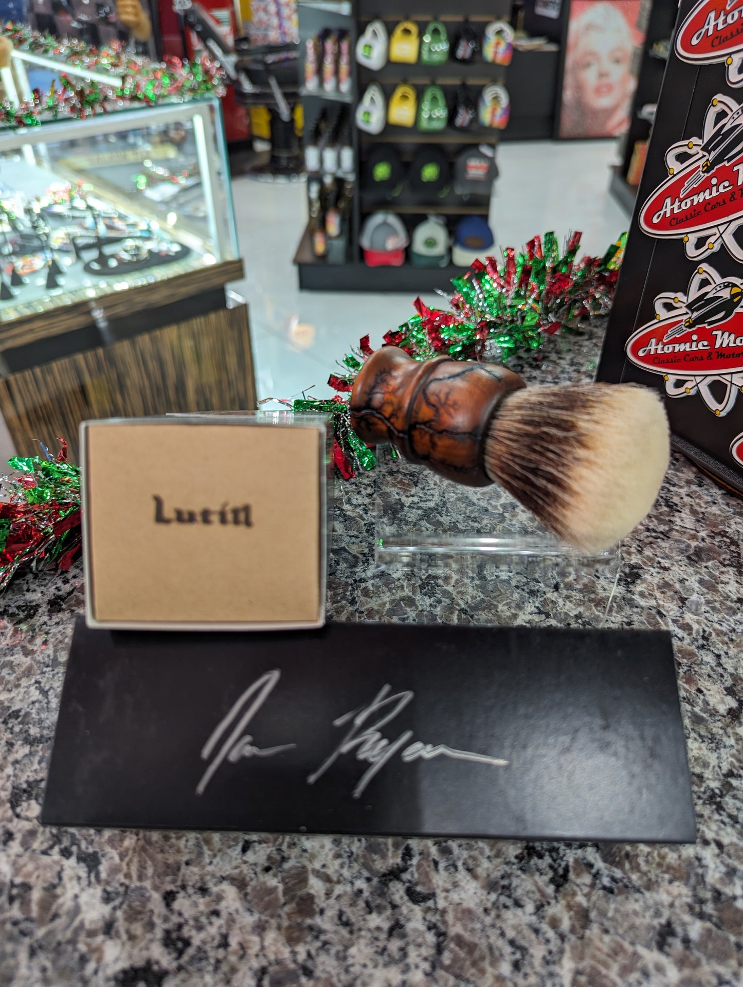 Custom, One-of-A-Kind, Quilted Cherry Wood Shaving Brush That is Hand Crafted By Ian Of Lutin BrushWorks. Using The Process of Fractal Burning It Creates A Pattern That is Formed on Each Piece That Will Never Match Another. Made of Badger Hair. Comes Gift Boxed.