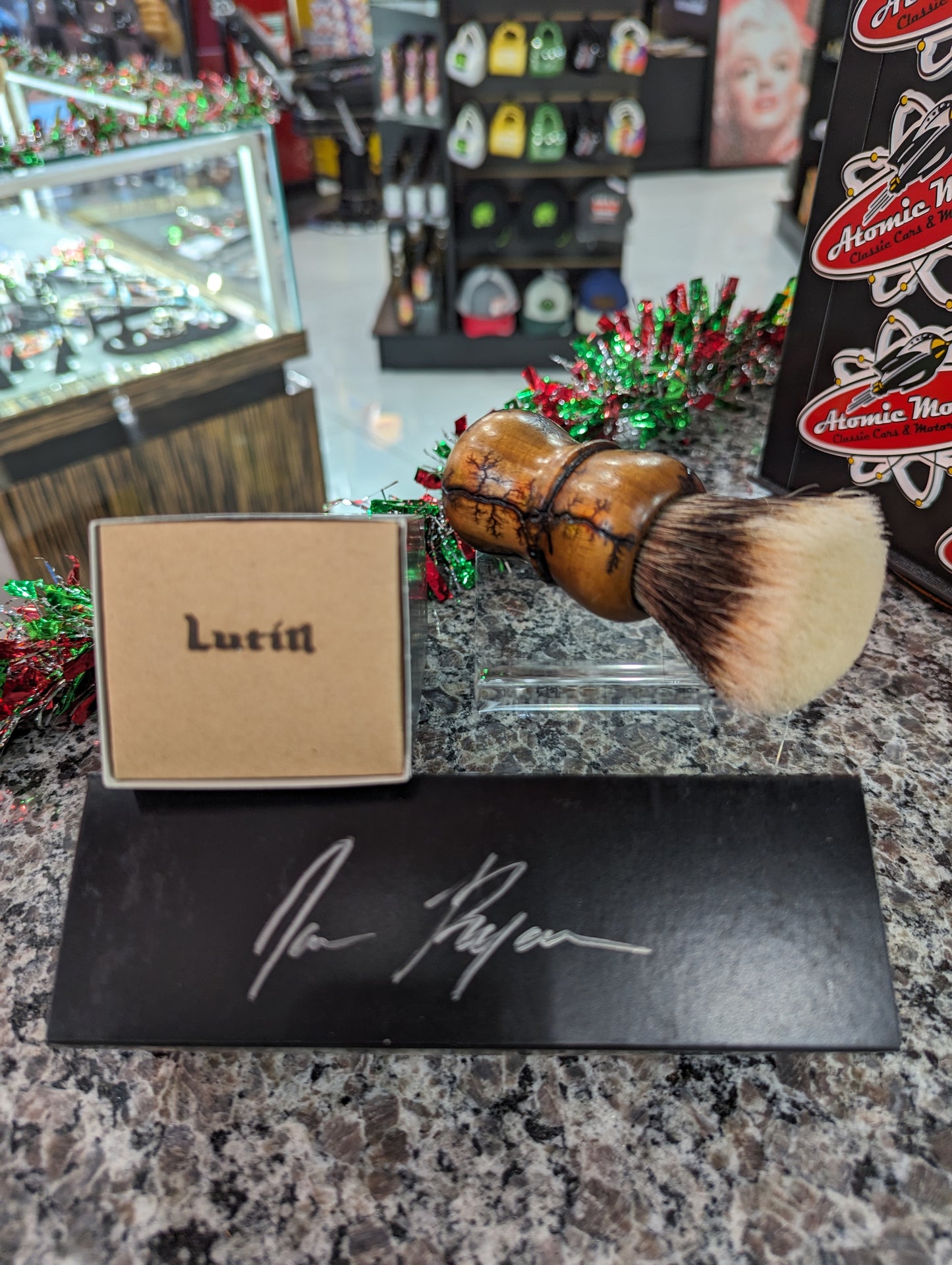Custom, One-of-A-Kind, Myrtle Wood Shaving Brush That is Hand Crafted By Ian Of Lutin BrushWorks. Using The Process of Fractal Burning It Creates A Pattern That is Formed on Each Piece That Will Never Match Another. Made of Badger Hair. Comes Gift Boxed.