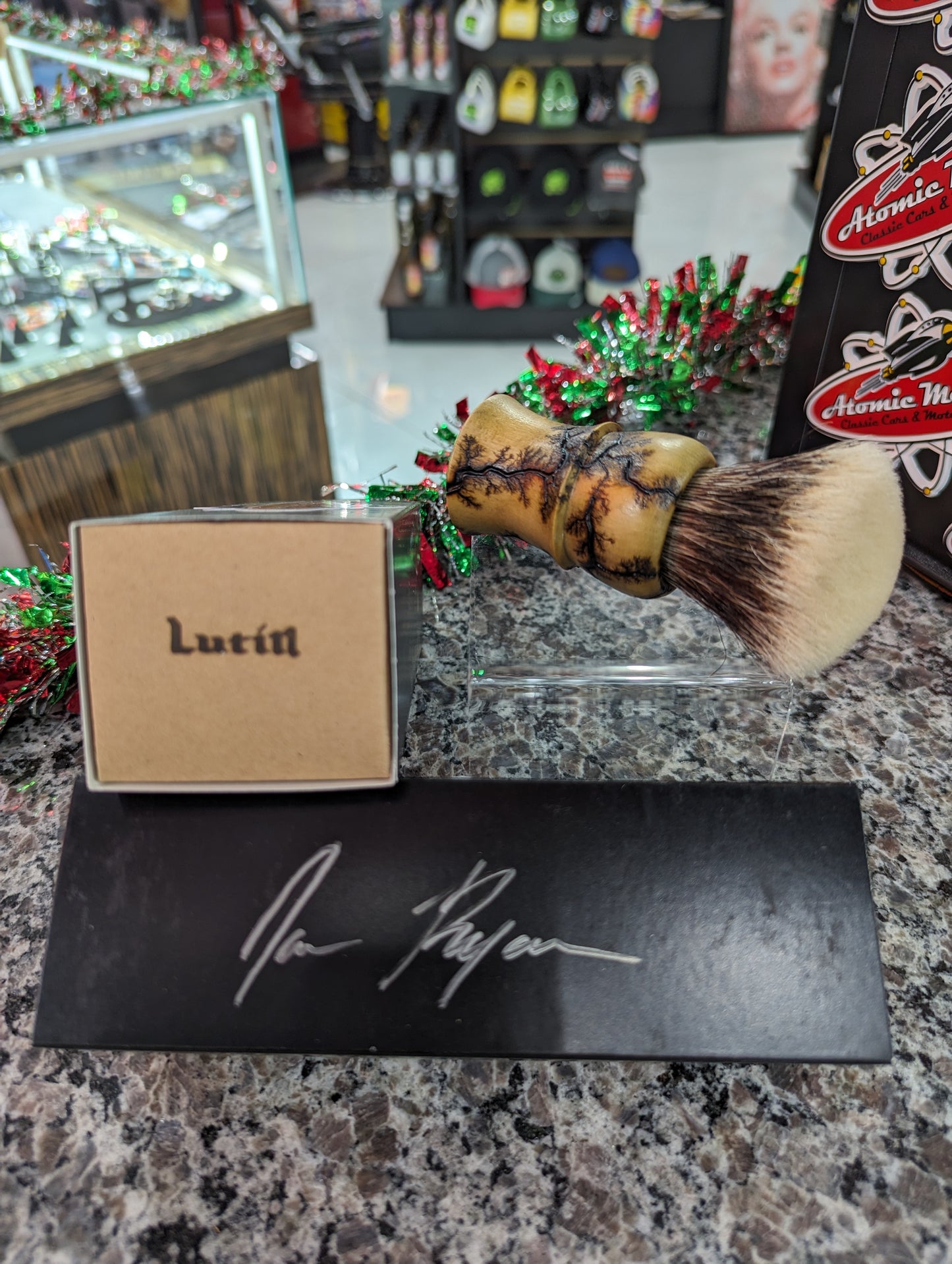 Custom, One-of-A-Kind, Poplar Wood Shaving Brush That is Hand Crafted By Ian Of Lutin BrushWorks. Using The Process of Fractal Burning It Creates A Pattern That is Formed on Each Piece That Will Never Match Another. Made of Badger Hair. Comes Gift Boxed.